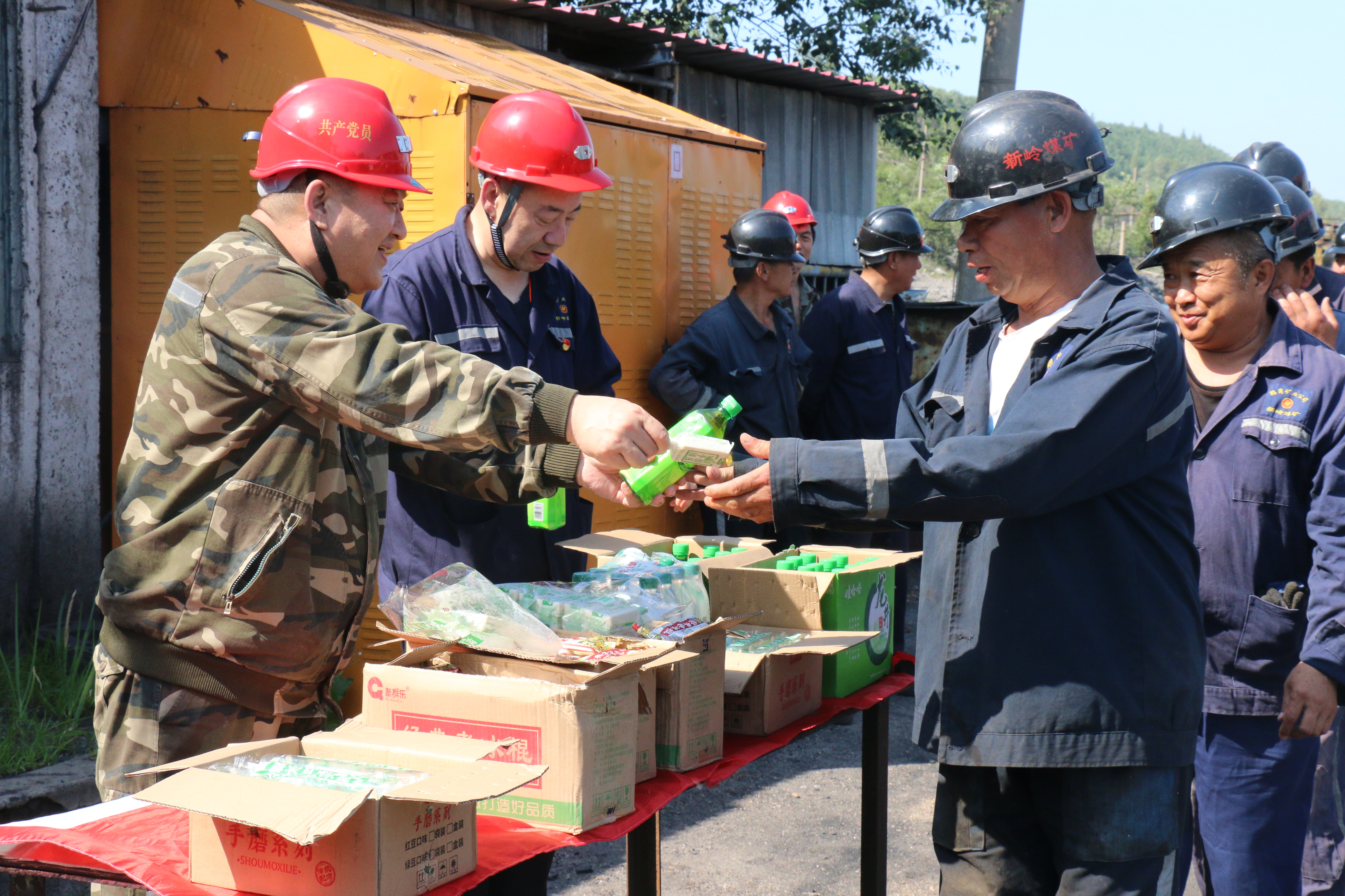 七月的煤城,烈日当空,热浪袭人。新岭煤矿露天生产现场,一线职工仍坚守在露天、槽底等生产岗位,在高温“炙烤”下挥汗如雨地辛勤劳作。为关爱职工健康,切实做好防暑降温工作,新岭矿党委开展“夏日送清凉”活动,矿领导和基层各支部负责人带着冰镇饮料、绿豆冰棍等清凉解暑的饮品,深入生产一线,为坚守岗位的职工送去丝丝清凉与深切关怀,用实际行动为职工撑起一片“清凉绿荫”。